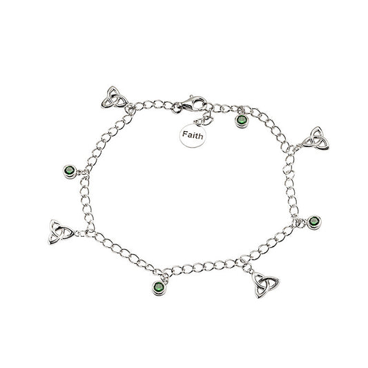 Sterling Silver Celtic Trinity Knot Bracelet with Emerald Green Cubic Zirconia Charms