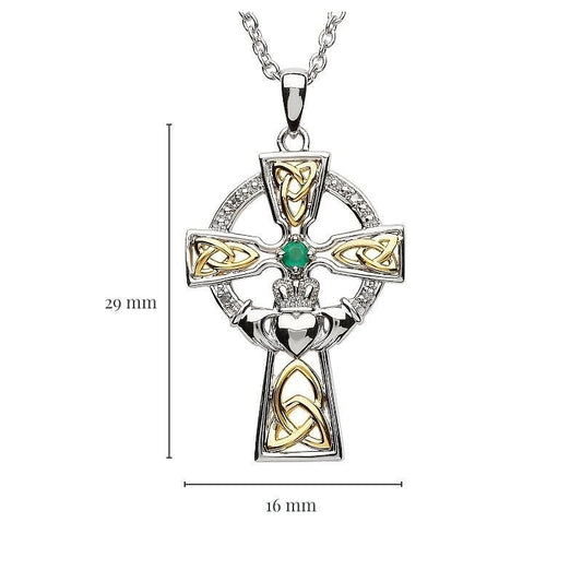 Sterling Silver Gold Plate Emerald Diamond Celtic Cross