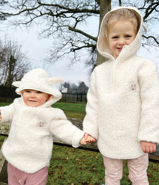 Cream Baby Sheep Kids 1/4 Zip Hoodie