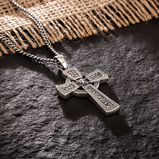 Mens Sterling Silver Oxidised Celtic Cross Pendant