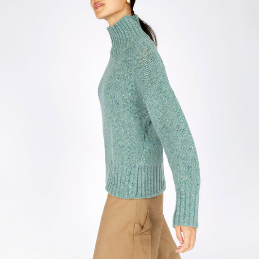 Paige Polo Neck Ladies Wool & Cashmere Sweater - Ocean Mist