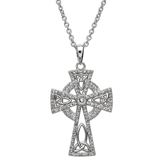 Trinity Knot Diamond & Emerald Silver Celtic Cross Necklace