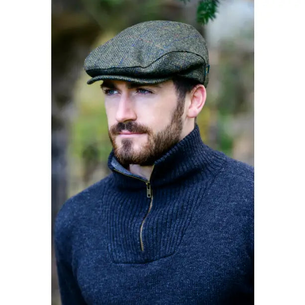 Crafted in Ireland from premium 100% wool, the Mucros Trinity Cap in classic black tweed offers timeless style with modern comfort. This traditional flat cap features a smart paneled design and a quilted lining for added warmth and durability, making it perfect for year-round wear.